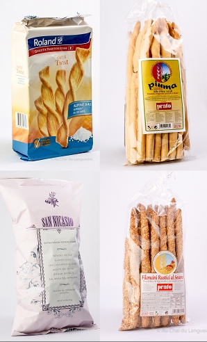 Gressin au Sésame, gressin fin rubata, gressin nature, aux olives vertes, au romarin.